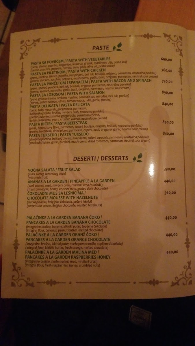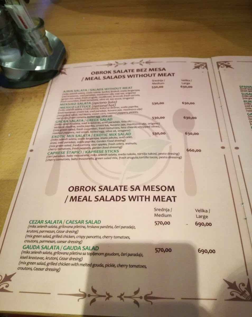 Pasta lovers will find satisfaction in the Pasta I Salata U Pozadini, which pairs pasta with a refreshing salad, while the Pasta Sa Piletinom features tender chicken in a savory pasta dish, ideal for those craving a more filling meal.
